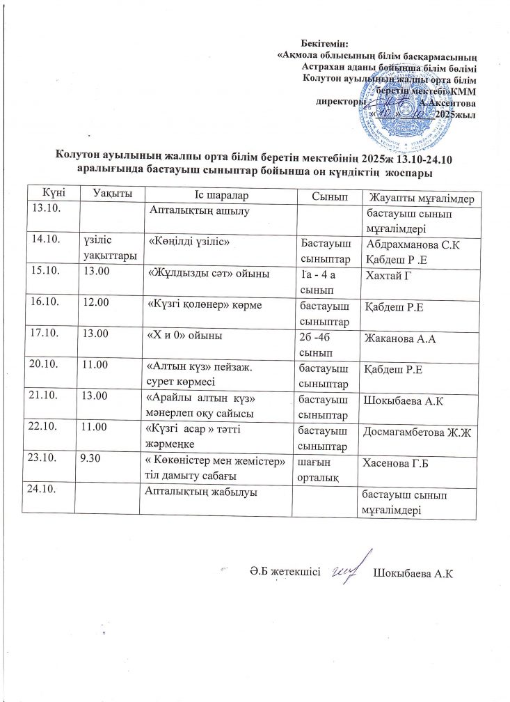 "Бастауыш сыныптар" онкүндігі 13.10.2025 – 24.10.2025 аралығында өтті.
